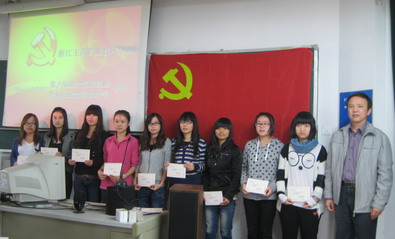 10月26日下午,我院第八期党校结业典礼暨第九期党校开学典礼在12A6举行,学院党总支书记陆灵荣、党总支组织委员陈建明老师、各党支部书记和第八期党校学员代表、第九期党校全体学员参加了典礼,典礼由陈建明老师主持。 在雄壮的国歌声中,我院第八期党校结业典礼暨第九期党校开学典礼拉开了序幕。首先由陈建设明老师介绍了第八期党校学员的学习情况,并宣读了优秀学员名单,由学院党总支书记陆灵荣老师颁发了第八期党校学员结业证书和第八期党校优秀学员证书。接着,陈建明老师介绍了第九期党校培训班的基本情况和学习要求。