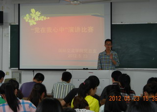 纪念中国共产党建党91周年,重温党的光辉历程,歌颂党的伟大成就,激发广大学生的爱国热情, 5月23日下午,“党在我心中”演讲比赛在我院隆重举行。学院党总支书记陆灵荣、各党支部书记、学工办成员和第十期党校培训班全体学员参加了本次活动。