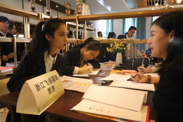11月13日下午,我院为休闲服务与管理专业和旅游管理专业这两个专业的大三学生在北区唯嘉西餐厅举办了一场实习招聘会,最大的目的就是为了给我们的同学们提供一个实现自我价值的平台,同时也给用人单位输送新鲜血液。诸多家企业向我校同学抛出橄榄枝,三十多家企业参与了此次实习招聘会。其中有许多家宁波有名的旅行社和大酒店,为我们的毕业生们提供许多专业对口的实习岗位,同学们也有了更多的选择。