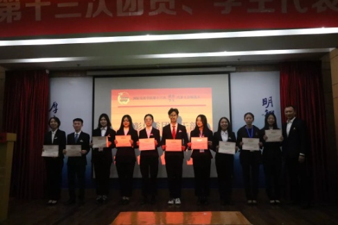 本次双代会首先对已经为学院师生服务了一年之余的优秀团学干部们进行了嘉奖,表彰他们的付出。
