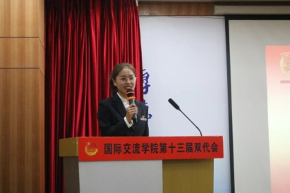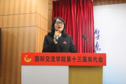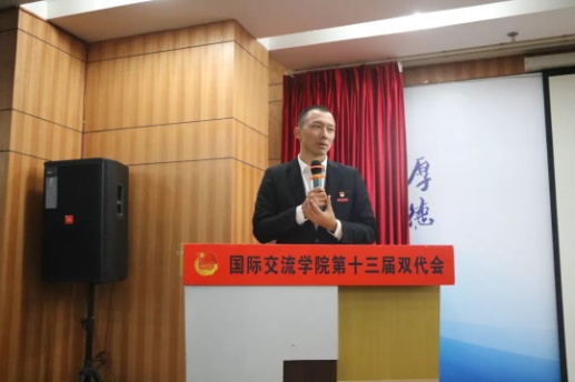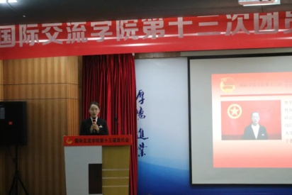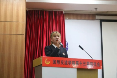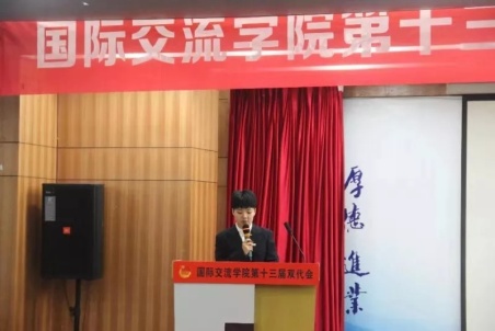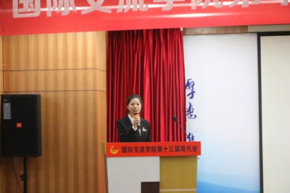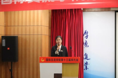 党总支书记董静老师在开幕词中对国际交流学院学院团总支和学生会的工作成绩做出了肯定,并对国际交流学院的未来人才寄予美好期许。她希望国际交流学院能够在学校的正确领导和全院师生的共同努力下,办学质量与办学特色不断朝着更高的标准迈进!