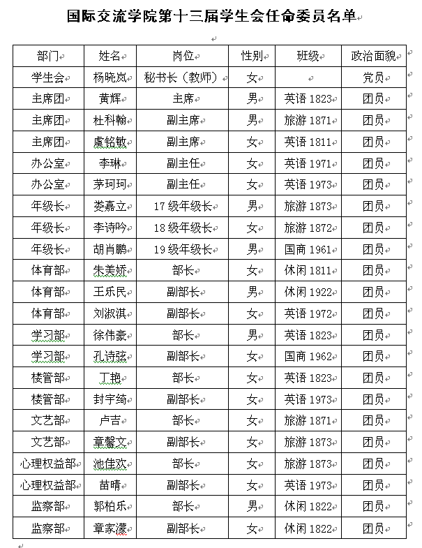 相信我们国际交流学院第十三届的团总支、学生会委员一定不会辜负全体师生的期望,为学校与分院做出自己的贡献。