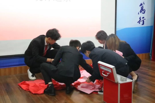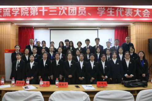因此,如果昨天你有在校园里看到一群西装革履的同学,他们一改往常少年的意气,反倒显得成熟稳重。那么他们很有可能是在奔赴这庄严的大会。除了这些团学精英,浙江工商职业技术学院团委书记郑芳老师、国际交流学院党总支书记董静老师、党总支副书记赵进军老师、国交辅导员孔祥阳老师、殷帅帅老师昨天也莅临了现场。