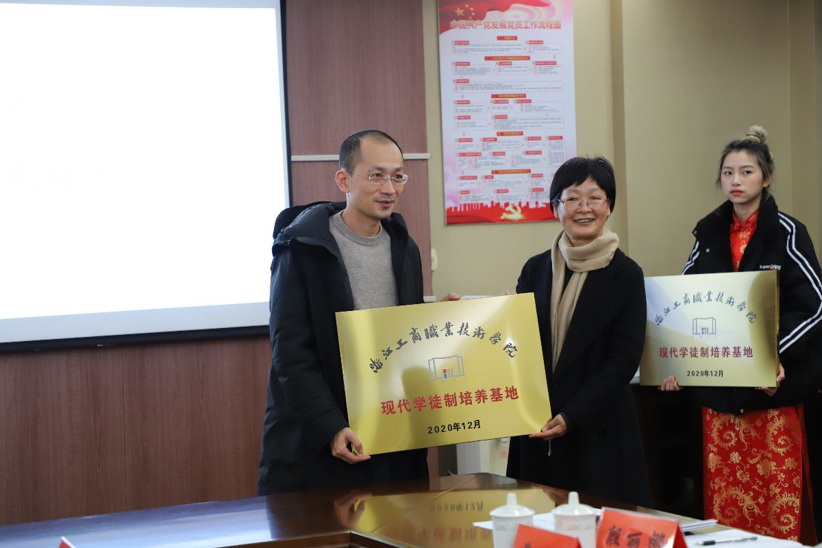 紧接着,娄军委处长分别与宁波市狮丹努集团有限公司、宁波华侨饭店有限公司华侨温德姆至尊豪廷大酒店签署了合作协议;副校长徐盈群分别给8家企业颁授了培养基地牌;分院王维平院长给企业师傅颁发了“导师”证书;现代学徒制班的徒弟们真诚地给师傅敬了茶,行了礼;师傅代表徐本钢、徒弟代表英语专业学生何泽周分别做了表态发言。