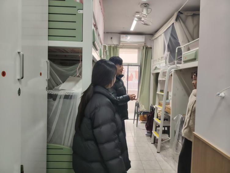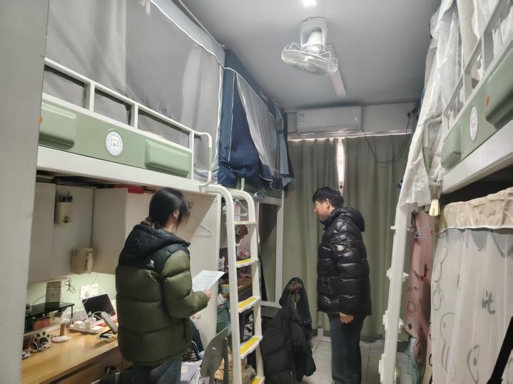 在走访6号楼学生宿舍时,张书记与同学们亲切交流,详细了解他们的返校情况和生活需求,耐心解答了学生们在宿舍生活中遇到的实际困难,并叮嘱同学们要增强安全防范意识,共同维护宿舍的安全环境。针对部分宿舍反映的设施维修等问题,检查组现场记录并联系后勤部门跟进处理。