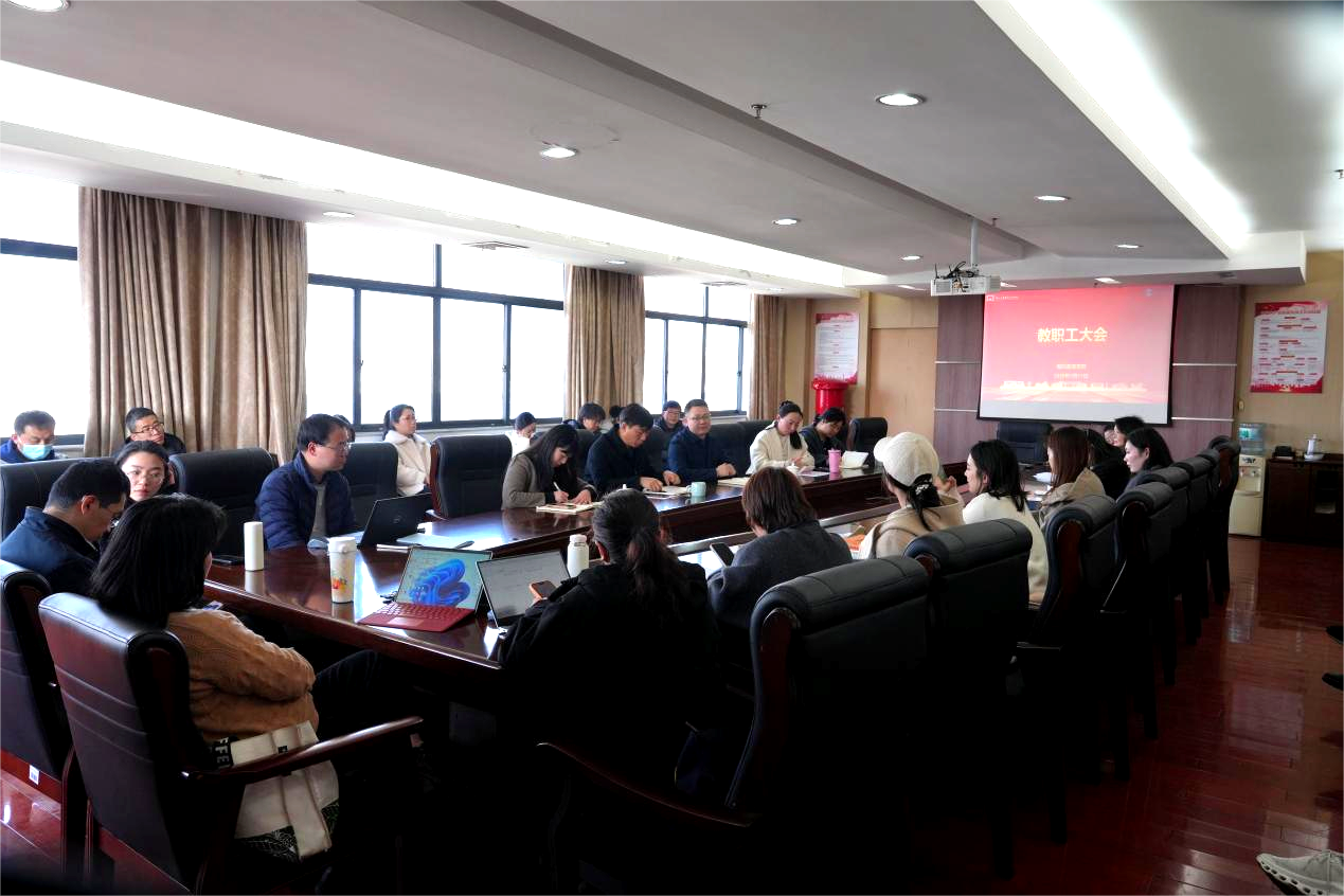 会上,学院领导班子汇报了新学期重点工作。张斌书记围绕师德师风学习与春季学期安全稳定工作展开,深入学习办好人民满意教育相关要求,细化学生返校、特殊群体关怀、社团监管及反诈等重点任务,切实筑牢校园安全防线;陈娓娓副院长部署新学期各项重点工作,重点推进三年行动计划“起步年”相关任务。指出学院正面临技术革命与产业升级带来的深刻转型,需聚焦专业数智化重构、职教出海、“留学工商”品牌建设等重点任务,强化底线意识与全员学习,引导教职工立足岗位践行使命,推动学院从“特色学院”向“品牌学院”迈进。