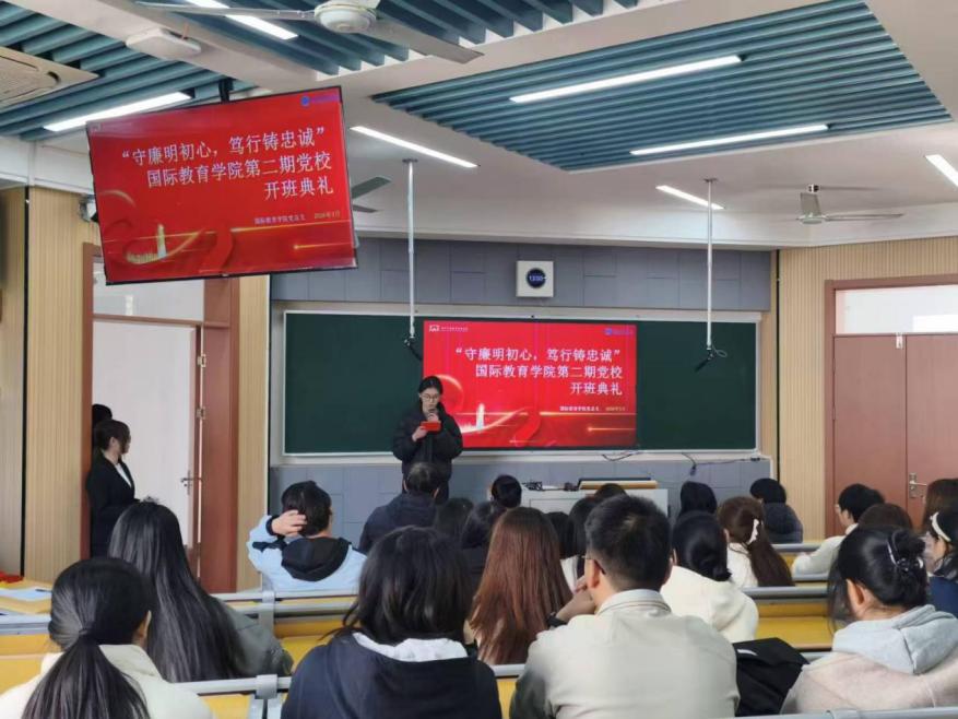 为加强青年学生党性修养,筑牢理想信念根基,培养合格党校学员,2026年3月25日,国际教育学院第二期党校培训班开班典礼在思齐楼22A7顺利举行。学院党总支书记张斌、党总支副书记赵灵芝、各党支部书记以及32名党校新学员参加本次开班仪式。