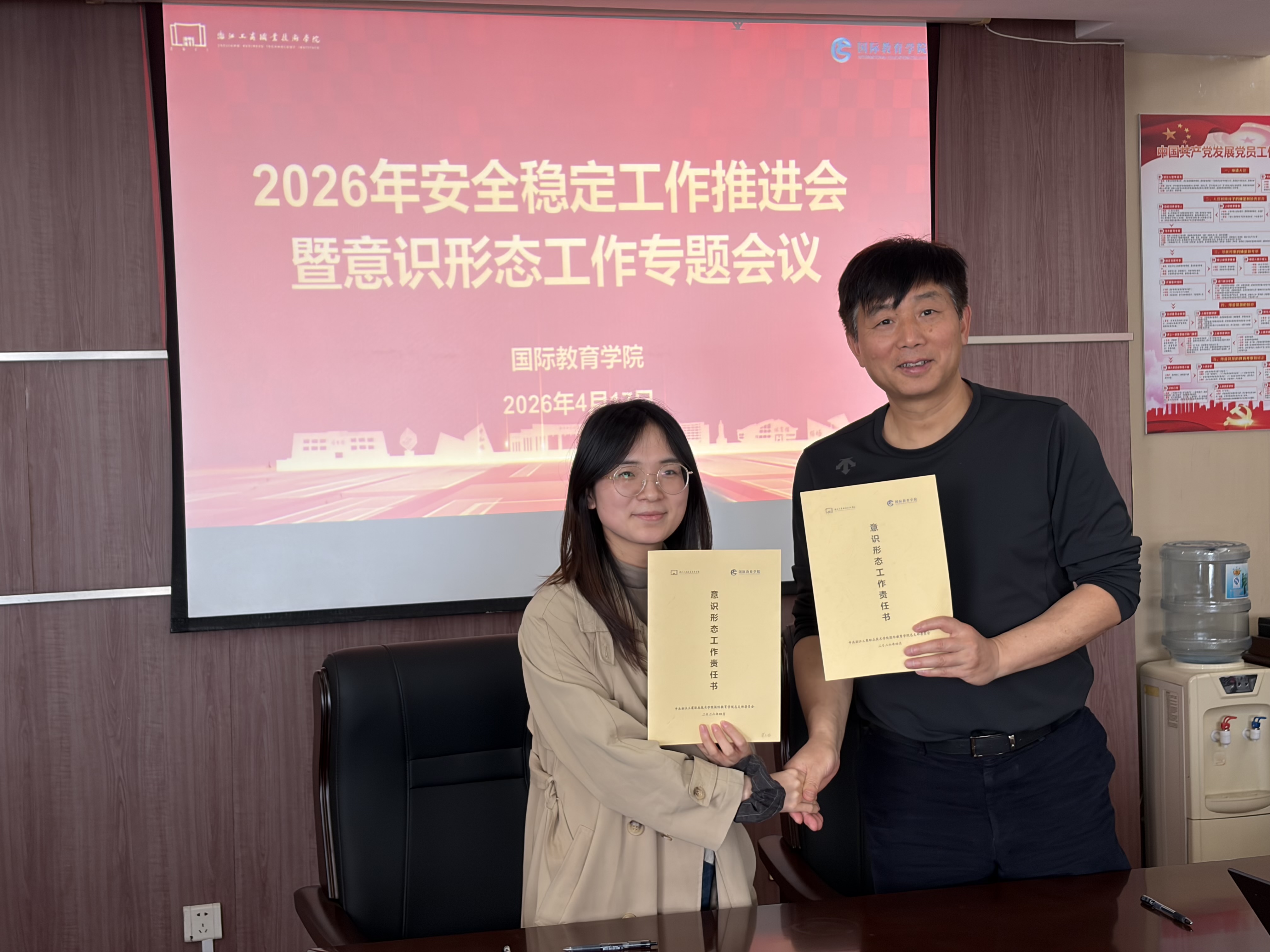最后,党总支书记分别与各专业、教研室、实训基地、三办主任以及各党支部书记签订了《意识形态工作责任书》。