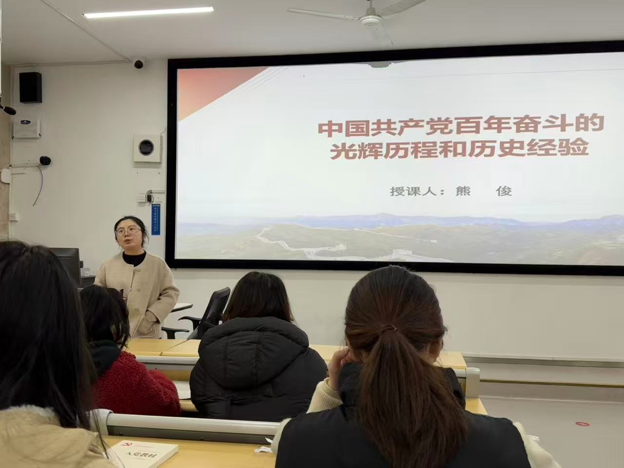 为进一步深化党的历史学习,切实加强党员思想政治建设,提升党校学员的党性修养与使命担当意识,11月26日,国际教育学院在思齐楼22C3教室举办题为《中国共产党百年奋斗的光辉历程和历史经验》的专题党课。本次党课由熊俊老师主讲,学院全体党校学员参加学习。大家共同回顾党的百年奋斗历程,感悟初心使命,汲取前进力量。