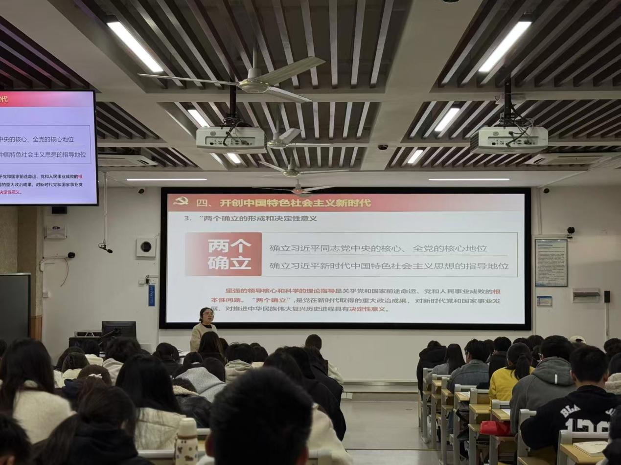 谈及开创中国特色社会主义新时代,熊俊老师重点剖析了新时代十年的伟大变革,通过鲜活案例展现了中国特色社会主义进入新时代的重大意义,它是我国社会主要矛盾、党的主要任务以及中国和世界关系发生新变化的集中反映。同时,深入解读了“两个确立”的形成和决定性意义,强调确立习近平同志党中央的核心、全党的核心地位,确立习近平新时代中国特色社会主义思想的指导地位,对新时代党和国家事业发展、推进中华民族伟大复兴历史进程具有决定性意义。