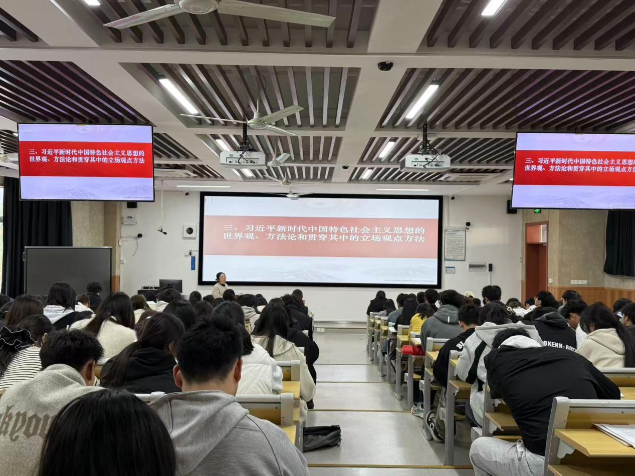 在阐述“马克思主义中国化时代化新的飞跃的时代背景”时,熊俊老师从国际和国内两个维度展开分析。国际上,世界百年未有之大变局加速演进,各种全球性挑战层出不穷,世界经济复苏乏力,国际局势“黑天鹅”“灰犀牛”事件频发,人类发展面临前所未有的机遇与挑战;国内方面,我国正处于实现中华民族伟大复兴的关键时期,改革发展稳定任务艰巨繁重,新情况新问题不断涌现。熊俊老师通过对比分析,深刻阐明了习近平新时代中国特色社会主义思想产生的时代必然性。